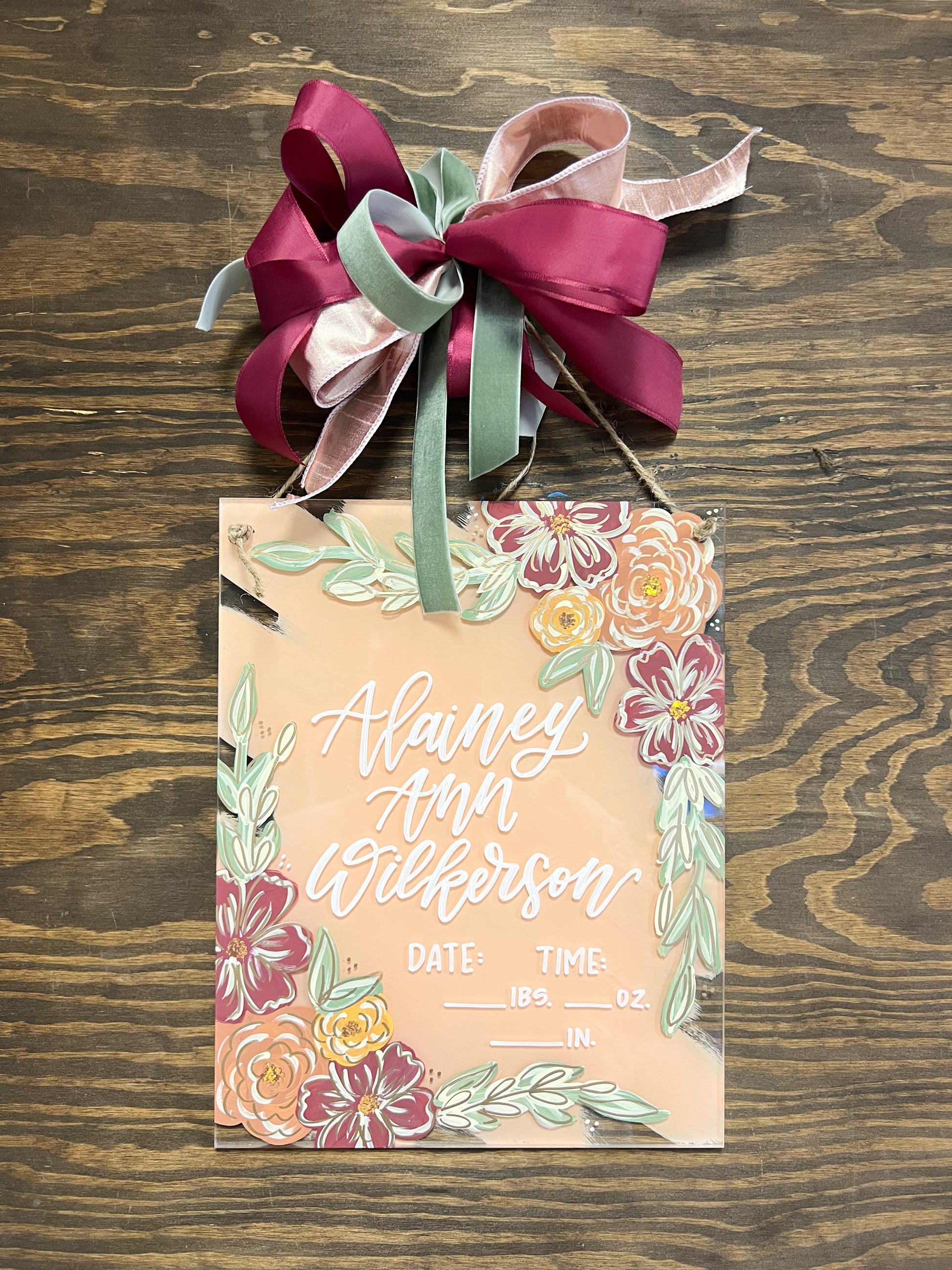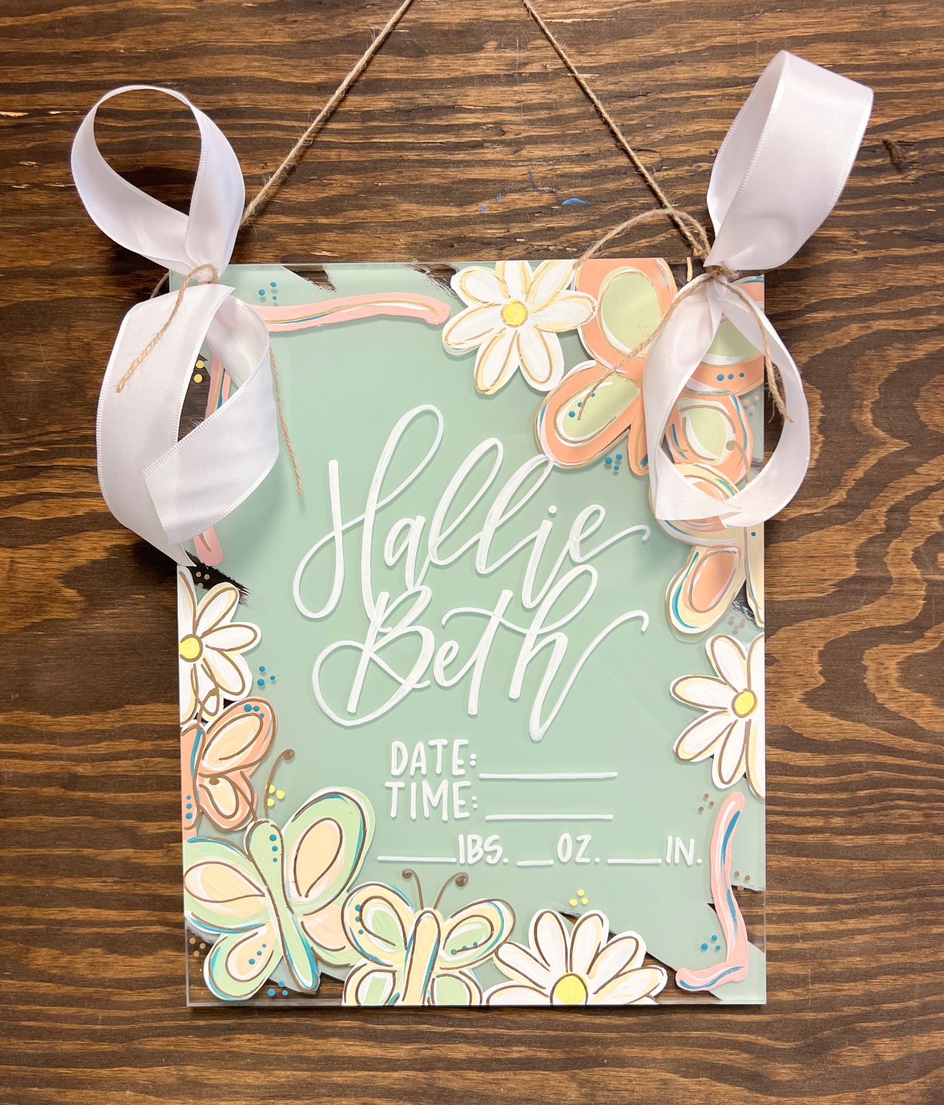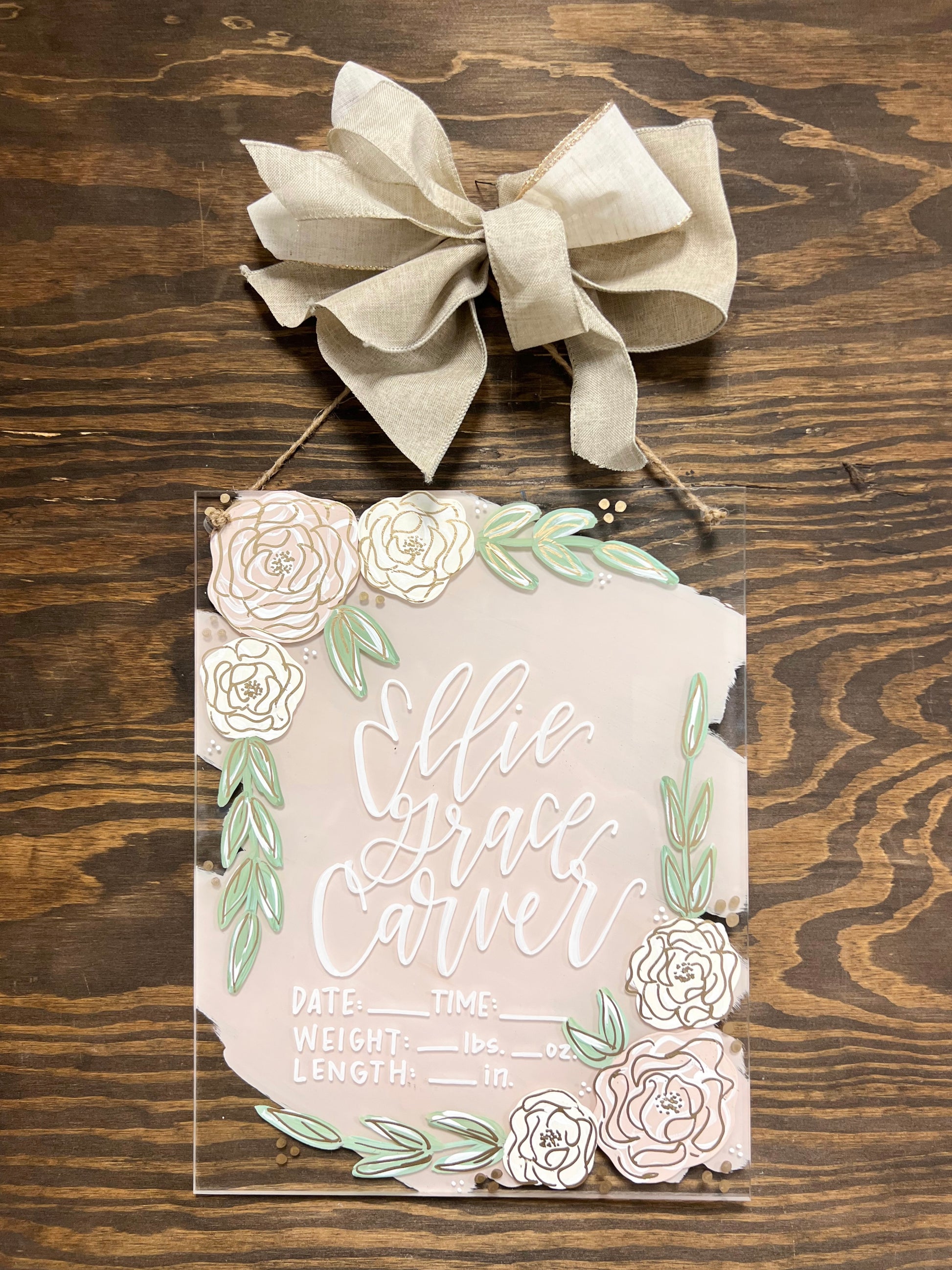 Acrylic Birth Announcements are 11”x14” acrylic and are 1/4” thick. Please leave the customization (name/theme/colors) in the “add note to order” box at checkout. If you have photos you’re wanting to send in or decor/inspo, send them to our email at kaligraphyorders@gmail.com along with your order number! These have a turnaround time of 4-5 weeks right now. If you’re needing earlier, please email or message us!