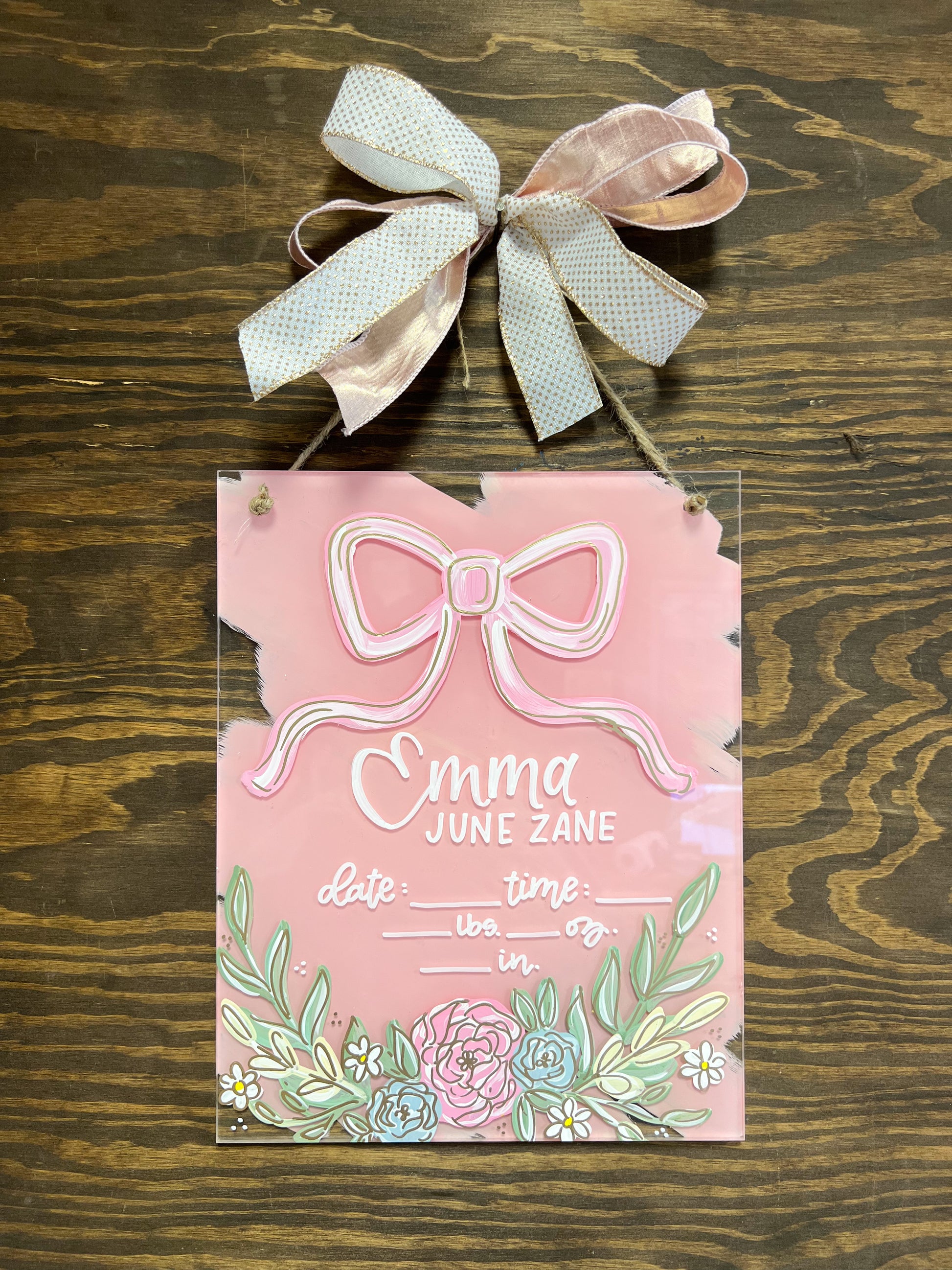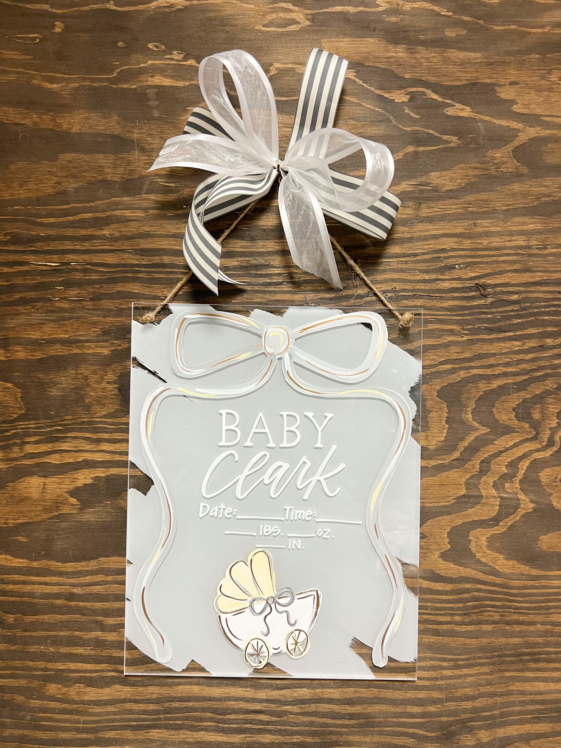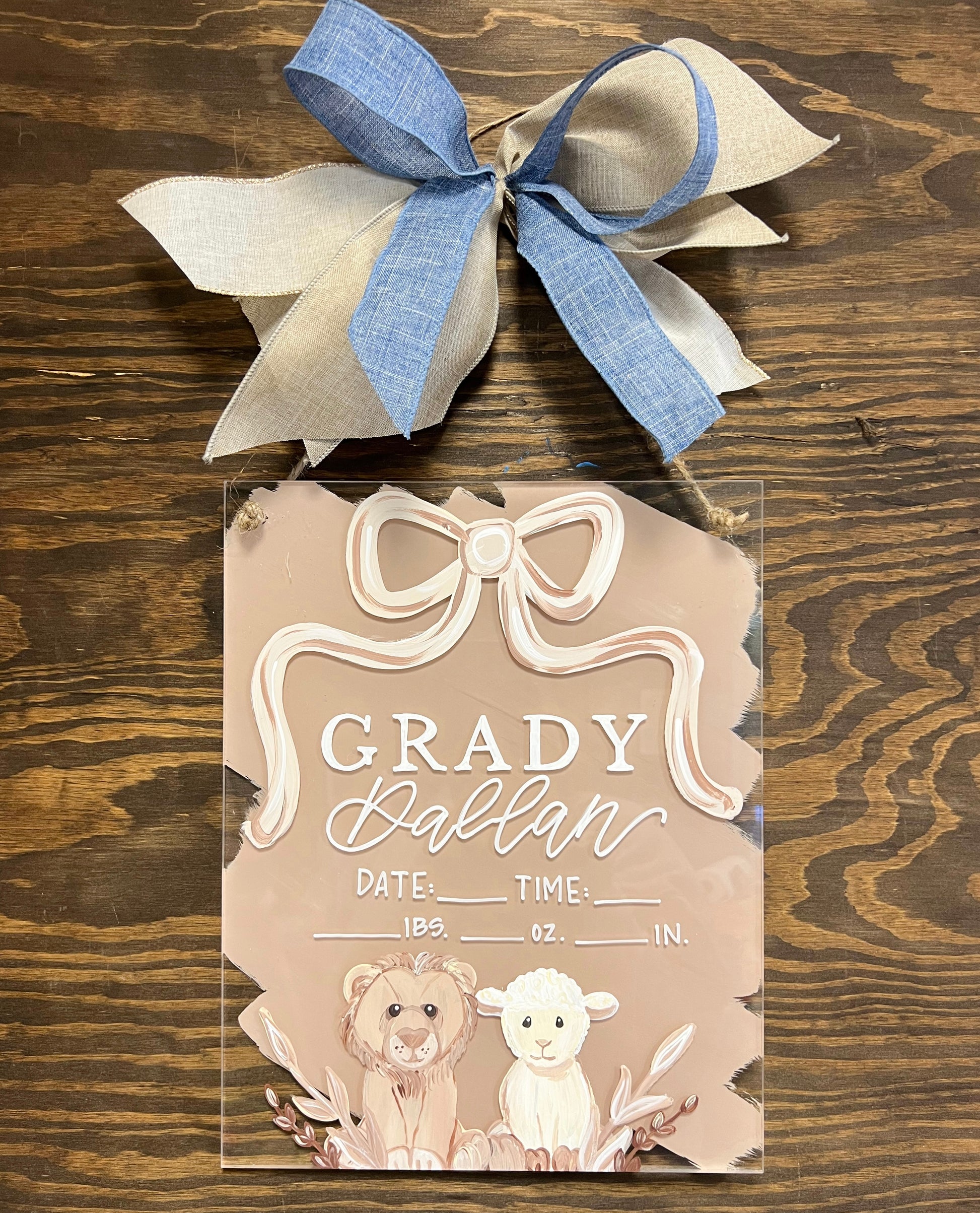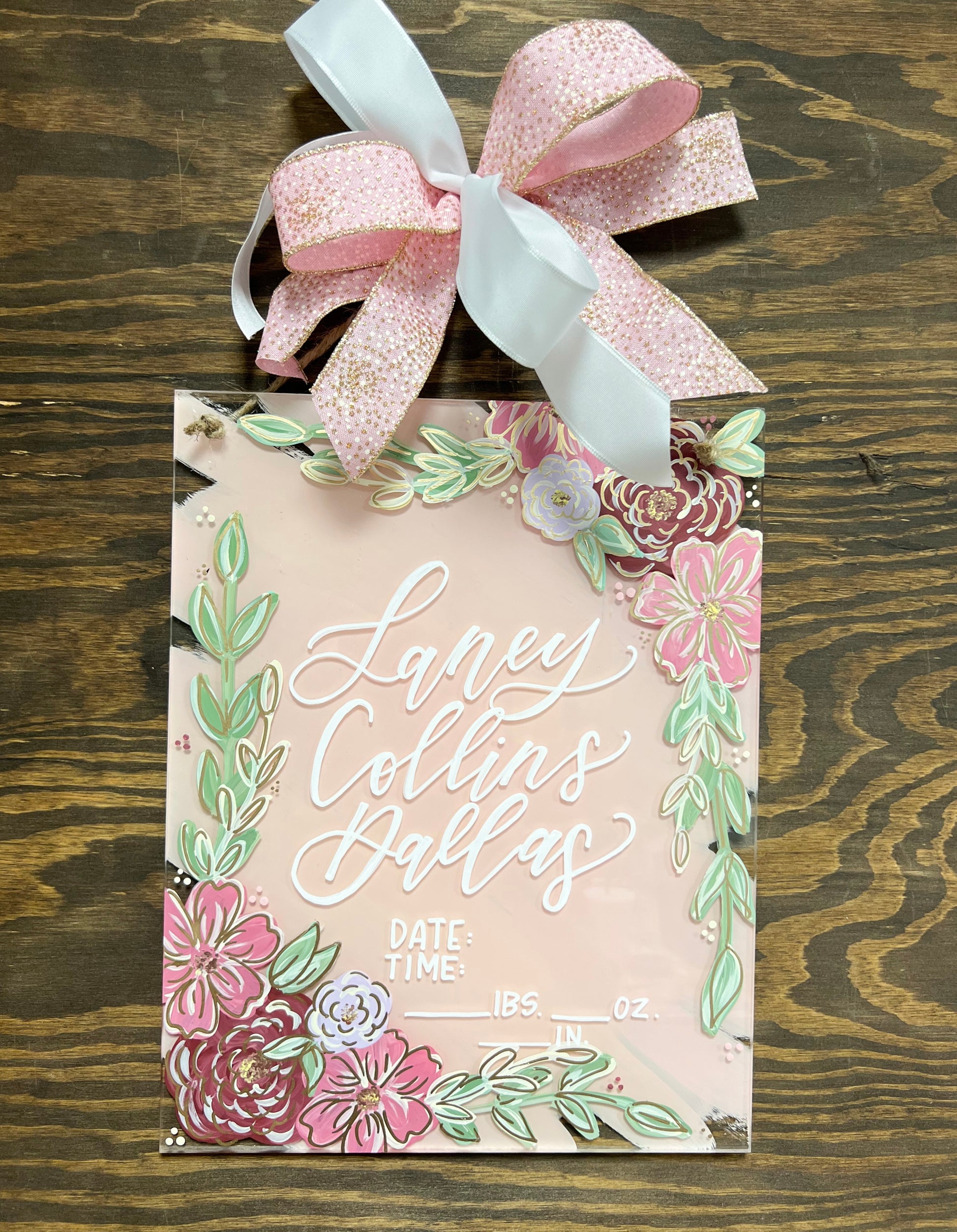 Acrylic Birth Announcements are 11”x14” acrylic and are 1/4” thick. Please leave the customization (name/theme/colors) in the “add note to order” box at checkout. If you have photos you’re wanting to send in or decor/inspo, send them to our email at kaligraphyorders@gmail.com along with your order number! These have a turnaround time of 4-5 weeks right now. If you’re needing earlier, please email or message us!
